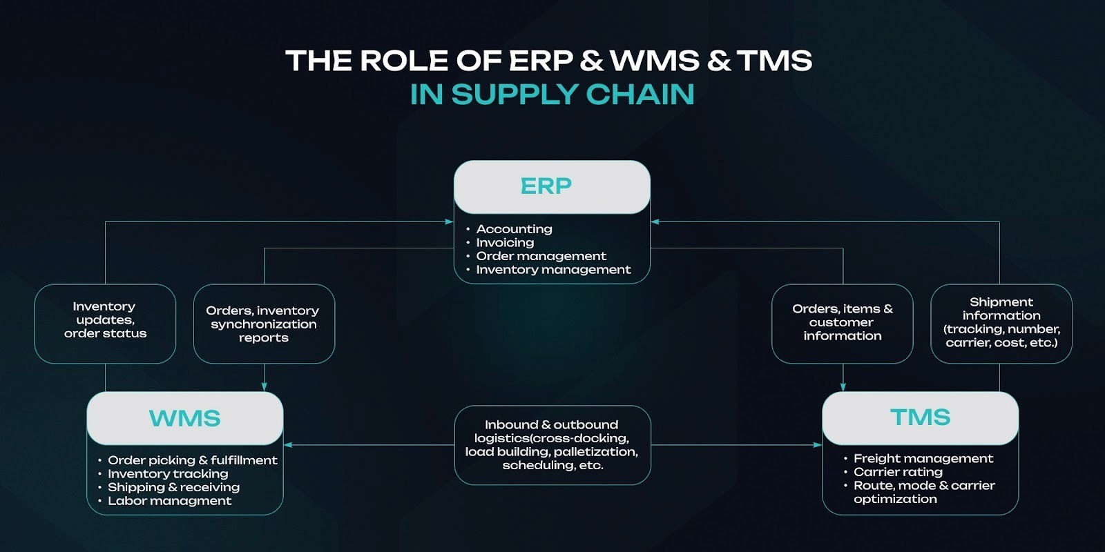 Окрім управління запасами, WMS координує інформаційні потоки між підрозділами, включаючи HR, бухгалтерію та обслуговування клієнтів, а також підтримує процеси сканування й ведення обліку.