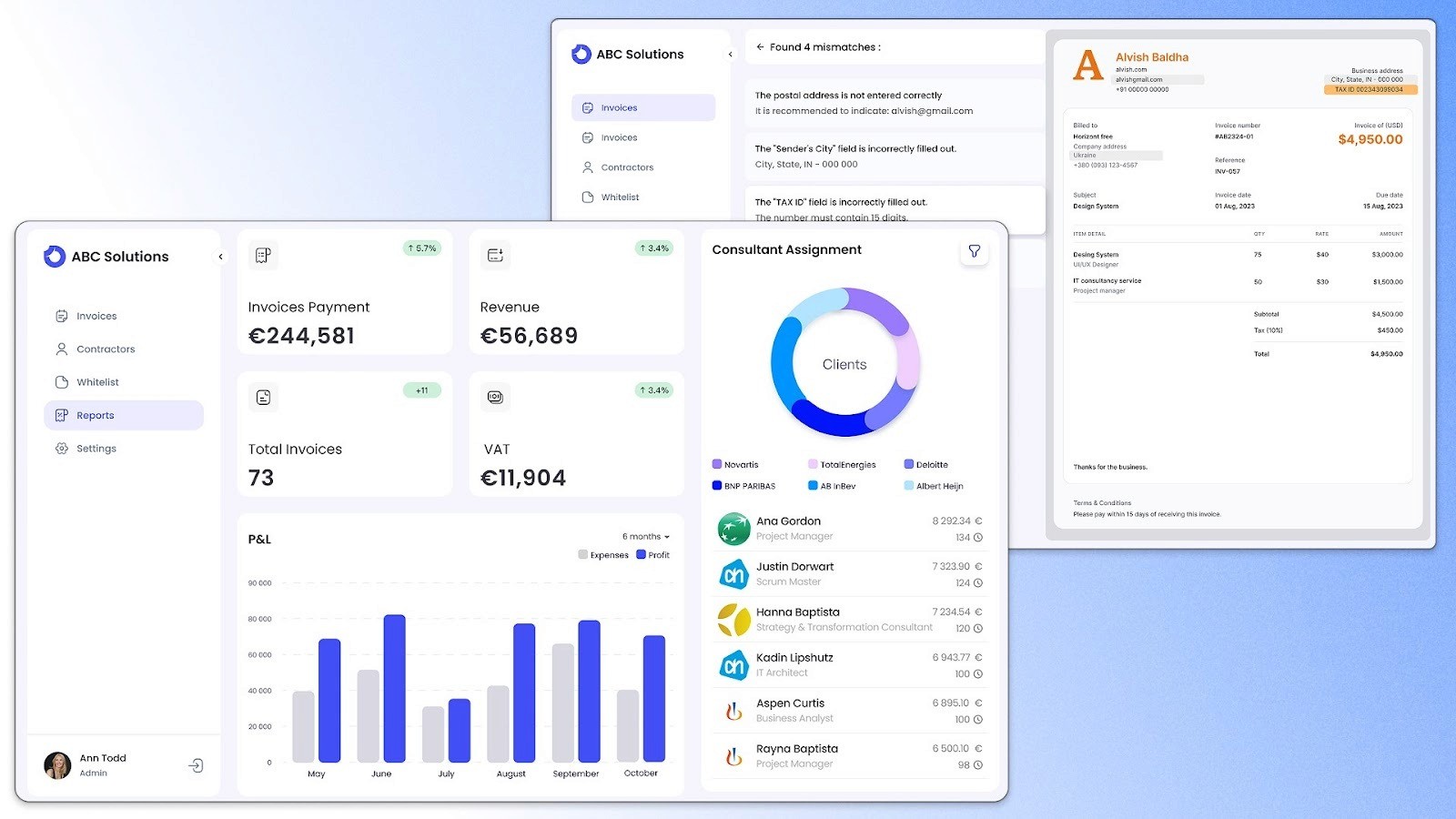 Автоматизує обробку рахунків-фактур і звірку платежів, зменшуючи кількість помилок та покращуючи управління грошовими потоками.